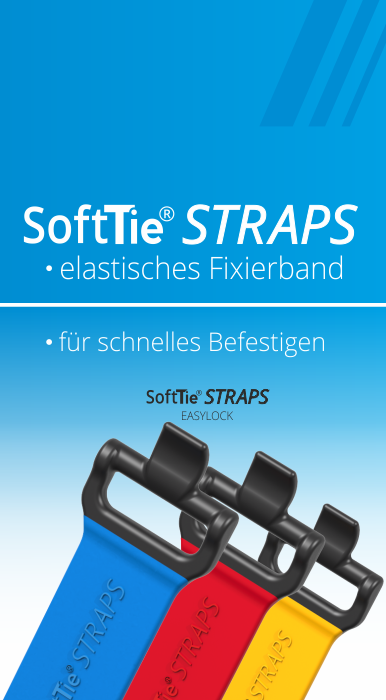 Unsere SoftTie Kabelbinder sind aus einem hoch elastischen und äußert reißfesten Material gefertigt. Durch das elastische Material kann bei Bedarf eine Vorspannung aufgebracht werden, wodurch der Kabelbinder selbst auf äußert glatten Oberflächen (z.B. Glas und lackierte Flächen) hält, ganz ohne zu verrutschen. SoftTie Kabelbinder werden aus einem Hochleistungs-Kunststoff gefertigt, dadurch kann der Kabelbinder nicht nur sehr hohen Belastungen standhalten, sondern hält sicher auf nahezu allen Oberflächen, ohne diese zu beschädigen.