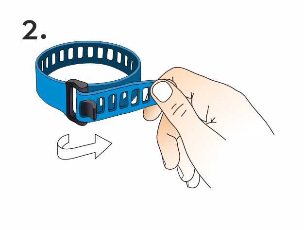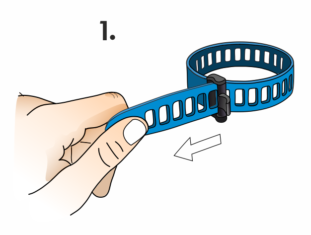 Umschlingen Sie das Objekt und fädeln Sie das Band durch die Verschlussöffnung. Die Verschlussnase zeigt dabei zu Ihnen.