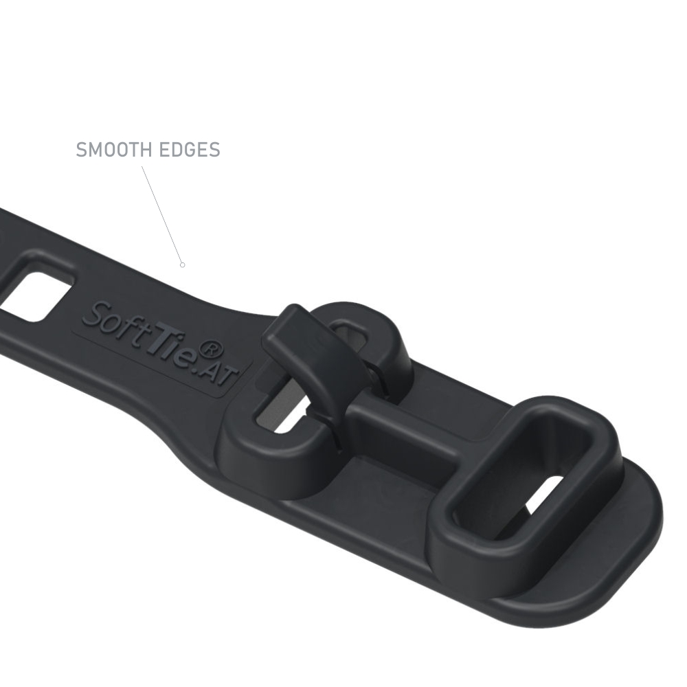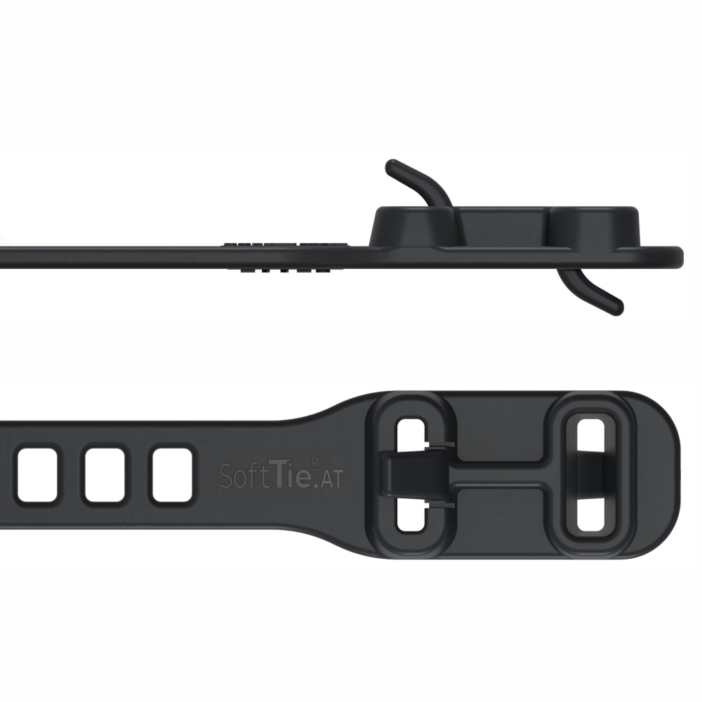 SoftTie sind aus einem hoch elastischem TPU gefertigt. Durch den Memory-Effekt nimmt der SoftTie nach der Dehnung seine ursprüngliche Form an.