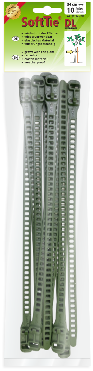 - Wächst mit der Pflanze mit, ohne diese einzuschnüren.